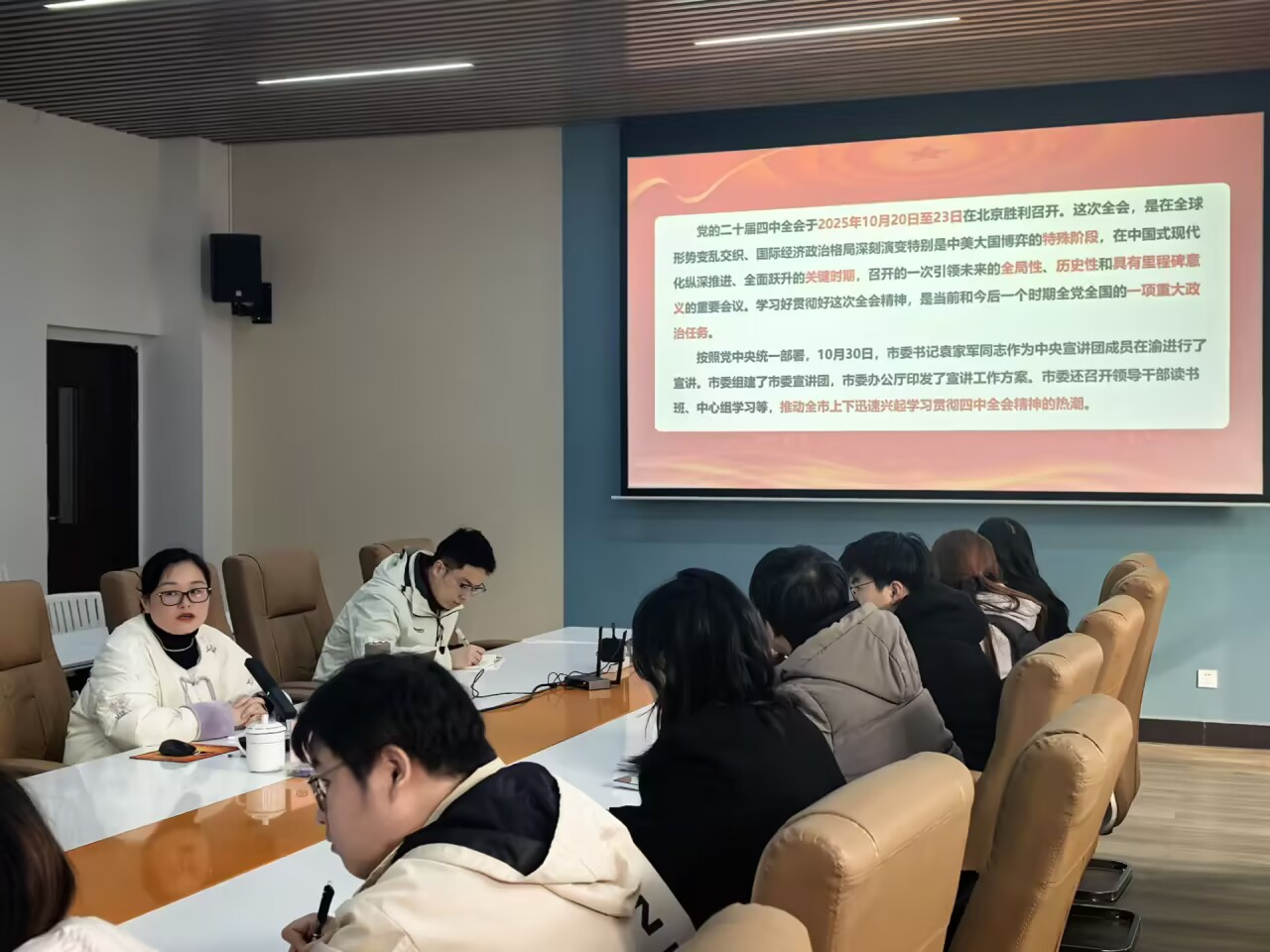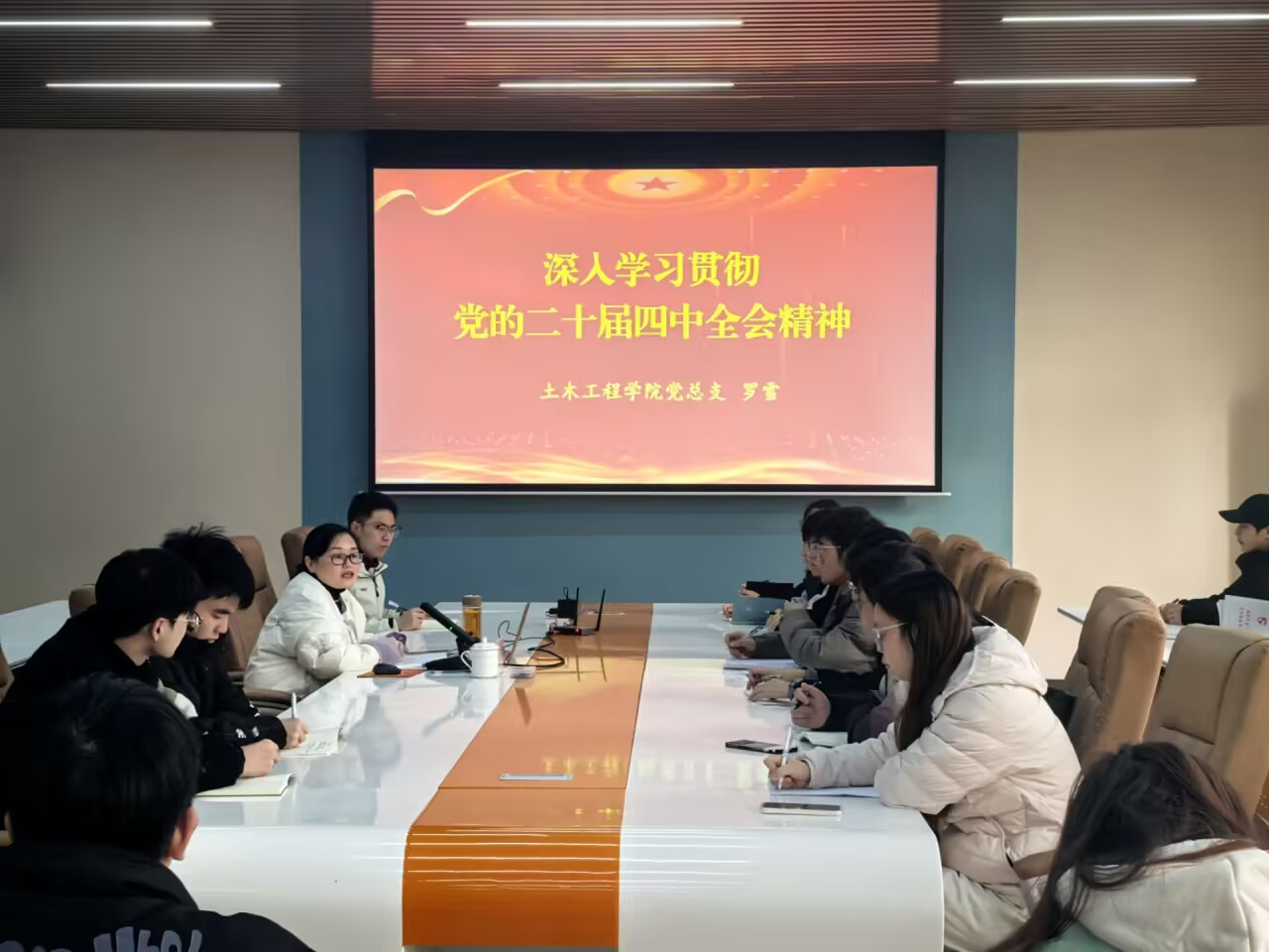 12月16日下午,土木工程学院于慎思楼520会议室召开党的二十届四中全会精神专题学习宣讲会。学院党总支书记罗雪以“深入学习贯彻党的二十届四中全会精神”为题,为学生党支部、团总支学生会等50余名学生骨干讲授专题党课。