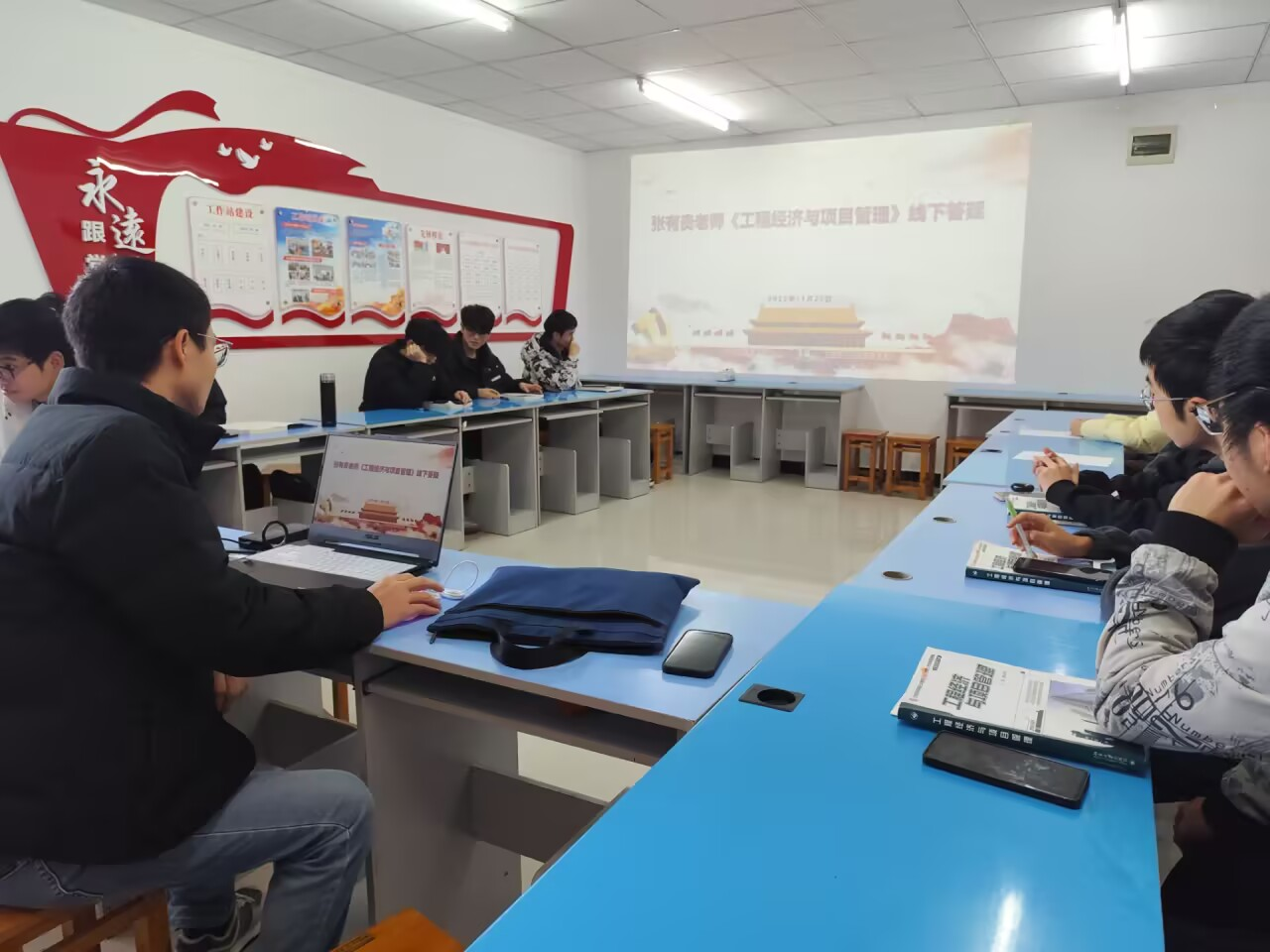 作为工程类专业的核心课程,《工程经济与项目管理》涵盖资金时间价值、项目可行性研究、成本估算与控制及风险分析等关键知识,因其概念抽象、公式繁多,成为许多同学学习过程中的难点。本次活动旨在搭建轻松的互动平台,帮助同学们扫清知识盲区。张有贵老师首先系统梳理了课程知识框架,并围绕净现值、内部收益率计算、项目盈亏平衡分析等学生普遍反映的难点,结合典型工程案例进行了生动讲解,使复杂内容变得清晰易懂。在自由答疑环节,同学们积极提问,问题不仅覆盖课后习题、期末考点等学习内容,也延伸至未来职业发展和专业竞赛方向。张有贵老师逐一耐心解答,并结合行业实际进行拓展,其专业而风趣的回应赢得现场阵阵掌声。