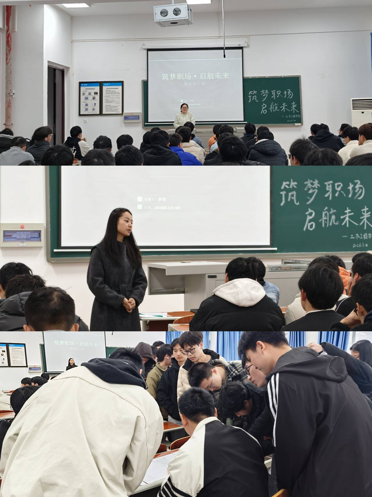课上,罗雪结合当前全国与区域就业形势,深入剖析了土木建筑行业发展趋势与人才需求。她通过分享不同时期的奋斗经历,激励学生把握机遇、务实奋进。针对部分毕业生在双选会中存在的观望心态,以真实案例指出提升求职主动性与转变就业观念的重要性,引导学生积极迈出求职第一步。同时介绍了近期校内外各类招聘安排,鼓励同学们广泛参与、主动争取。